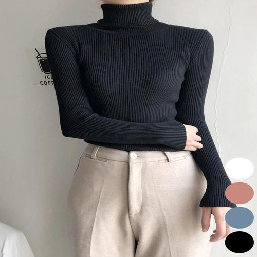 베이직 슬림 골지 하이넥 니트 WFLD9HZ