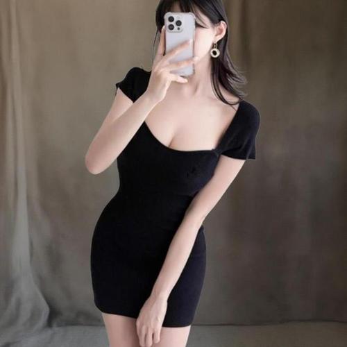 [신상오픈런]여성 러블리 스퀘어넥 쫀쫀 골지 반팔 미니 드레스 (39186992)