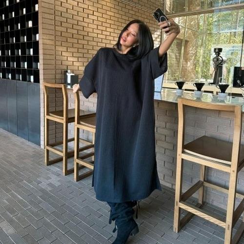 [다잇템][다잇템] 여자 실내복 팔부 밑트임 큰사이즈 미니멀리즘 골지 롱원피스_24433125_588872