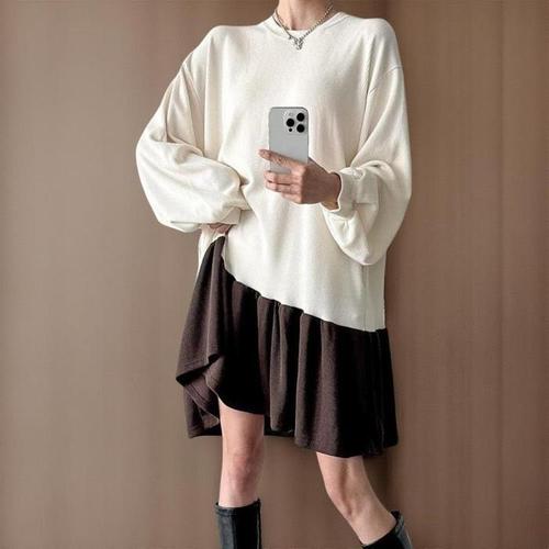 [신상오픈런]여성 투톤 골지 퍼프 프릴 미니 원피스 가을용 (41913457)