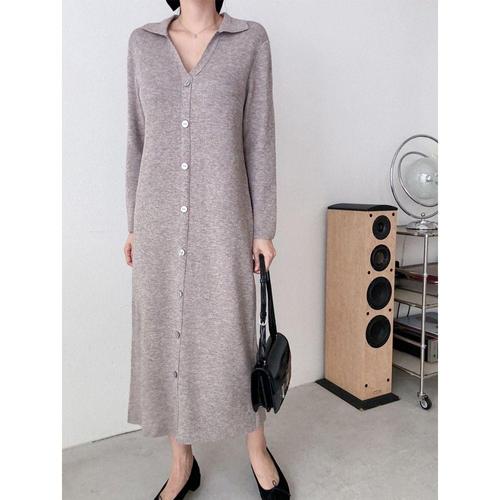 여자 봄 가을 겨울 골지 브이넥 니트 롱 원피스