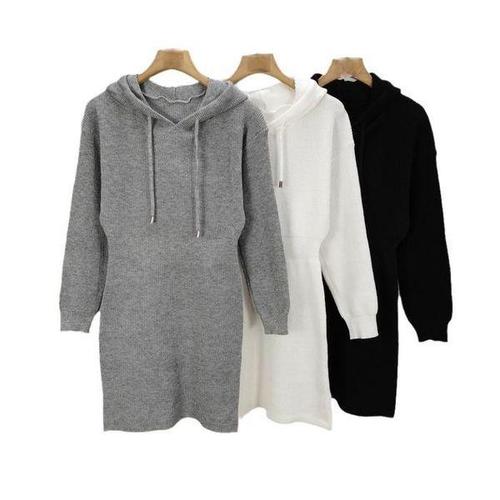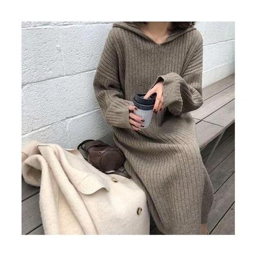 [나인포시즌]볼매 가을 겨울 골지 후드 홀가먼트 니트 롱 원피스 데일리룩