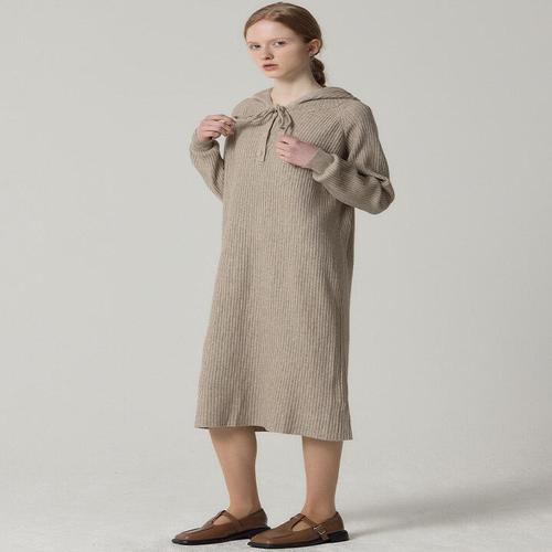 [셀럽하우스]여성 HCYG3632 후드 윈터 겨울 골지 따뜻 니트 가을 롱 원피스