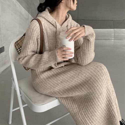 [에이치플러스몰]골지 원피스 후드 니트 여성 겨울 봄 롱 가을