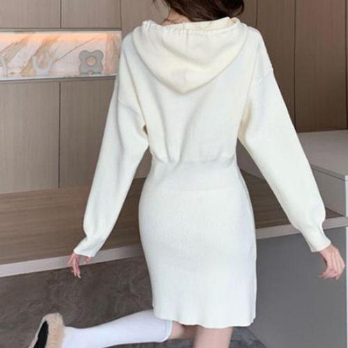 골지 니트 스타일 미니 후드 원피스 고품질 봄가을 데
