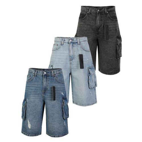 [에스엔피골프]SNP골프 남성 빈티지 워싱 카고 데님 하프 팬츠