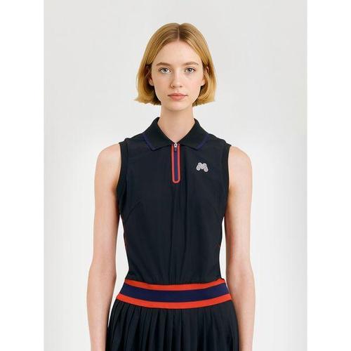 [김영주골프]여름 플리츠 카라넥 스판 배색 여성 민소매 골프 원피스 DQMLOP25