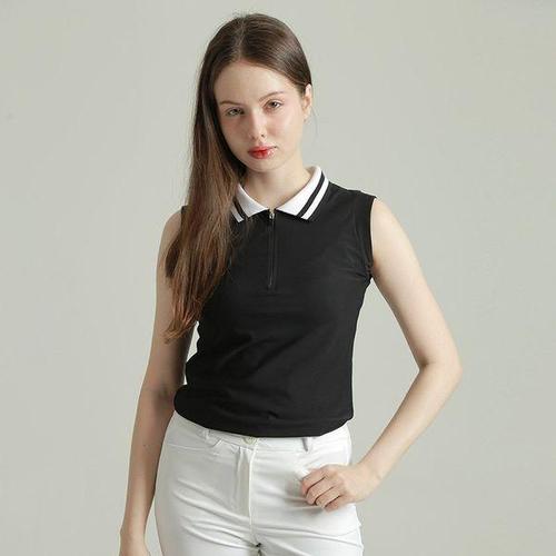 [에이치플러스몰]투 라인 카라 민소매 여자골프티