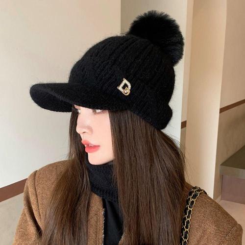 여성 골프 등산 D 이니셜 방한 니트 방울 모자