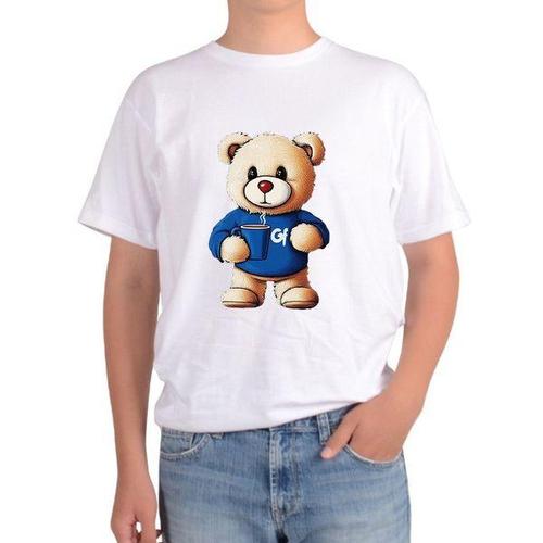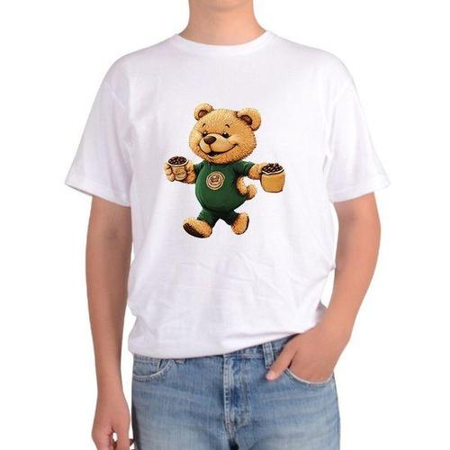 [에이치플러스몰]반팔티 전사이즈 곰돌이 카페 커피 곰인형