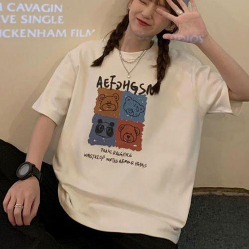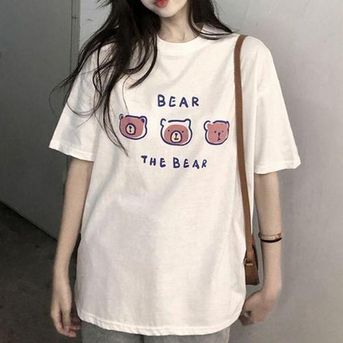 [에이치플러스몰]여성 곰돌이 오버핏 반팔티 1P 여름 데일리 티셔츠