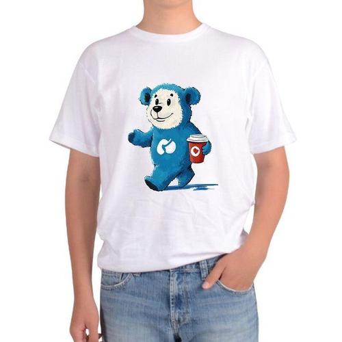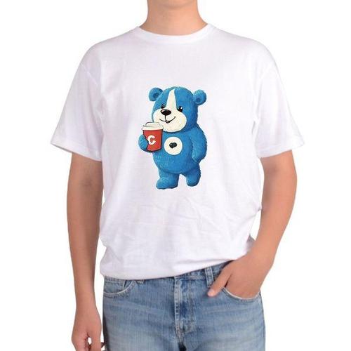 [에이치플러스몰]반팔티 전사이즈 곰돌이 파란색 커피컵 카페