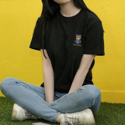 [셀러허브_여성트랜드패션]쿠키곰돌이 로고 레이어드 여자 면반팔티