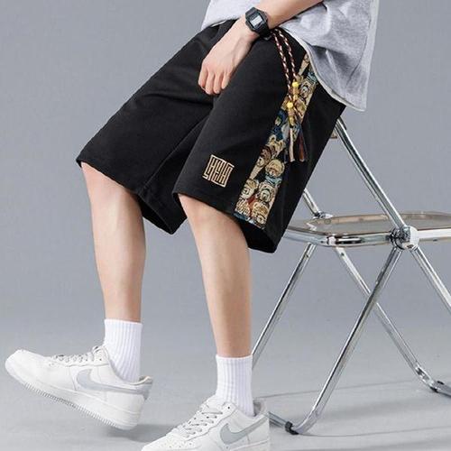 [에이치플러스몰]빅사이즈 쿨바지 버뮤다팬츠 곰돌이자수 남자반바지
