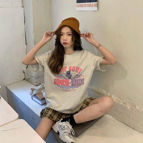 상의 캐릭터 루즈핏 곰돌이 여름 여자 반팔 티셔츠