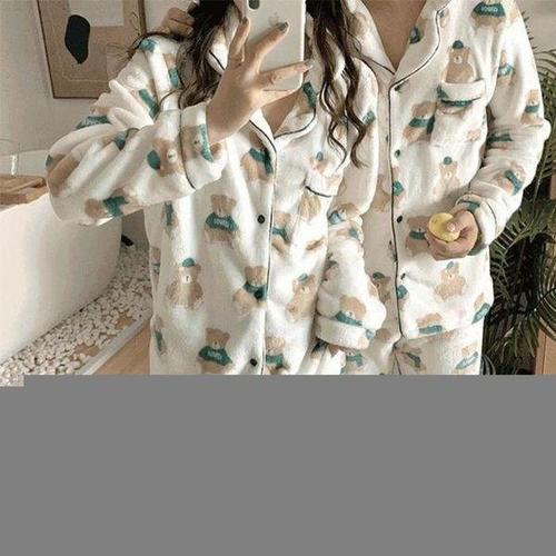 [신상오픈런]여자 극세사 곰인형 투피스 수면잠옷 파자마 세트