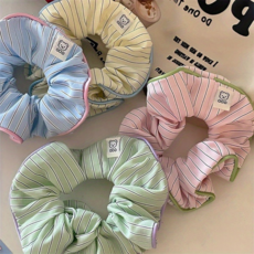 귀여운 캐주얼 스트라이프 곱창밴드 스크런치 4종 세트