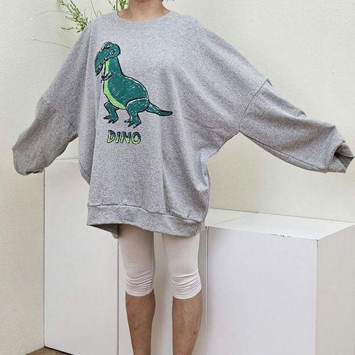 [에이치플러스몰]루즈핏 공룡 맨투맨 티셔츠 ob24351