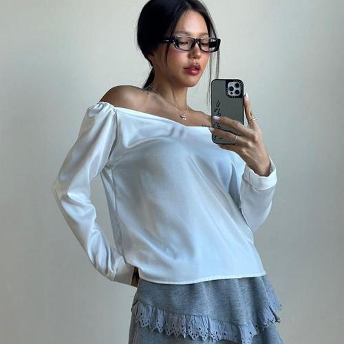 TEMU 2026년 신상 레이스 오프숄더 디자인 긴팔 여성용 봄/가을 셔츠