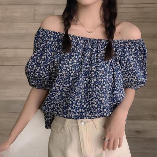 [신상오픈런]여성 꽃무늬 오프숄더 퍼프 블라우스 반팔 셔링 (35401938)