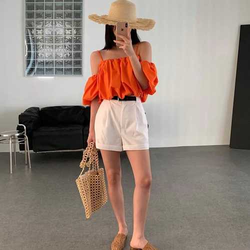 TEMU 멀티컬러 여성용 우아한 골지 섹시 여름 오프숄더 캐미솔 탑 & 캐주얼 쇼츠 세트