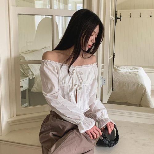 옷자락 / 여성 오프숄더 크롭 블라우스 데일리룩