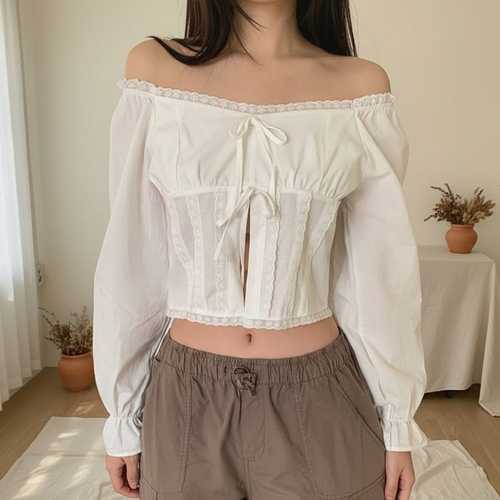 옷자락 / 여자 데이트룩 여리핏 오프숄더 크롭 블라우스