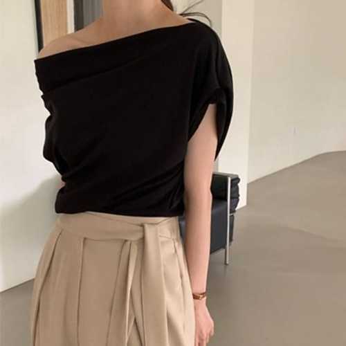 슈팅스타 / 우아한 오프숄더 사선 루즈핏 반팔 블라우스
