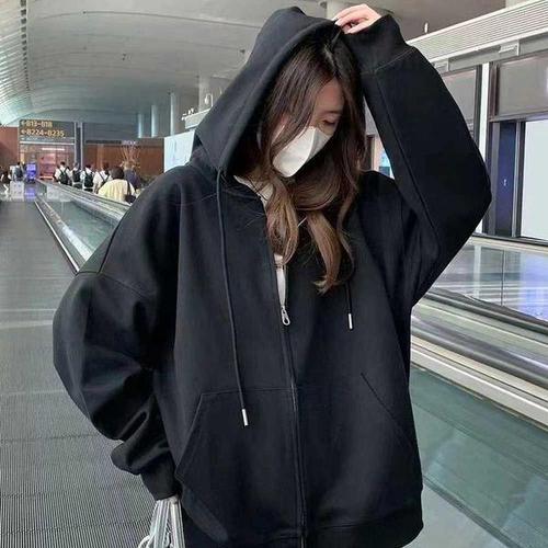 [에이치플러스몰]여자 공항 패션 캐주얼 후드 집업 검정 무지 점퍼