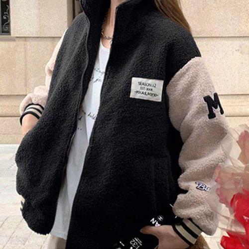 [에이치플러스몰]여자 해외 여행 공항 패션 후리스 야구 점퍼 뽀글이