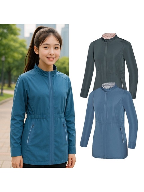 [신상오픈런]여성용 방수 하이넥 스트링 바람막이 점퍼 캐주얼 광택 디자인