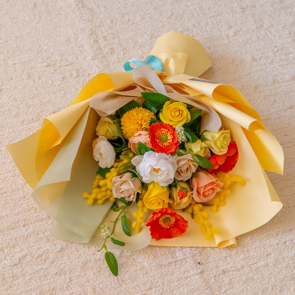 카네이션 라넌큘러스 20송이 꽃다발 비누꽃 + 메세지픽 + 상장카드