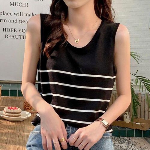 [셀럽하우스]얇은 ZBPX7886 스트라이프 니트 티셔츠 굵은 숄더라인