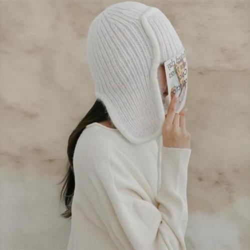 여성 따뜻한 앙고라 털 니트 귀달이 모자 귀도리 골무