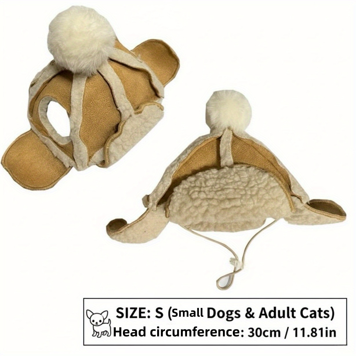 TEMU 겨울 따뜻한 강아지 모자, 목과 귀 보호 기능 포함 - 두꺼운 니트, 부드러운 원단, 치와와, 포메라니안, 시바견 등 중소견견에 적합