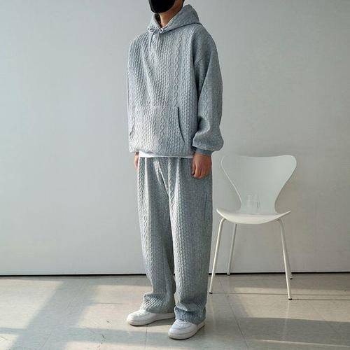 [맨즈북]가을 롱와이드 남성 회색 트레이닝세트 후드 니트셋업