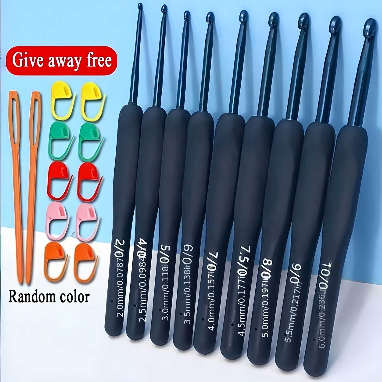 TEMU 9피스 블루 크로셰 훅 세트, 스테인리스 소프트 핸들, Amigurumi와 뜨개질 초보자에게 이상적, 크로셰 담요, 교체형 크로셰 훅, 수제 크로셰, 인체공학적 디자인의 가벼운 고품질 강력한 구조를 가진 다용도 초보자용 크로셰 도구