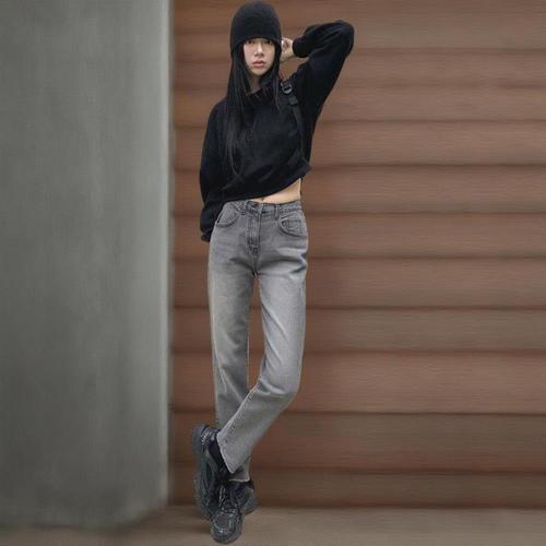 [신상오픈런]여성용 그레이 워싱 스트레이트 데님 바지 스트리트 패션