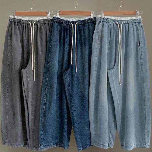 [쿠마르] 남성 워싱 와이드 청바지 데님 팬츠