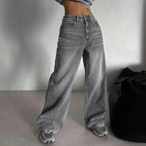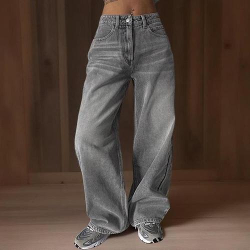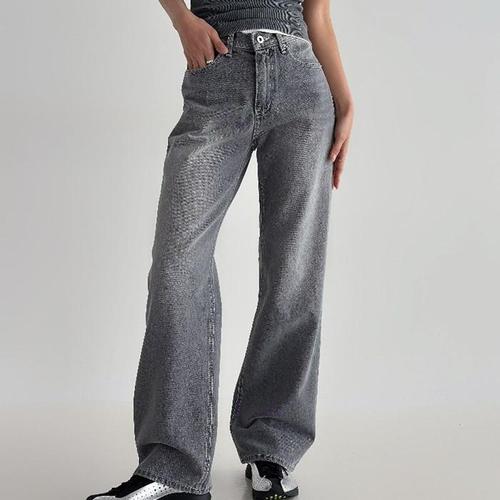 [신상오픈런]여성 빈티지 워싱 그레이 와이드핏 청바지 (41993041)
