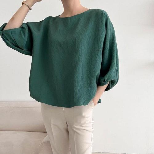 [신상오픈런]벌룬블라우스 펌킨 딥그린 찰랑 라운드넥셔츠 (30121753)