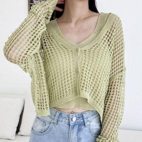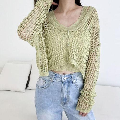 [에이치플러스몰]여성 니트 데일리 긴팔 그물 클래식 가디건 망사 여름
