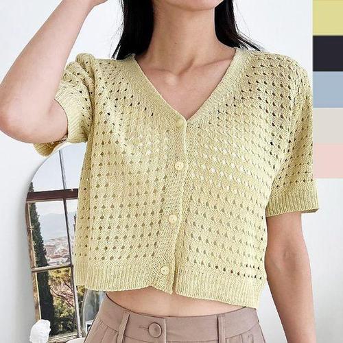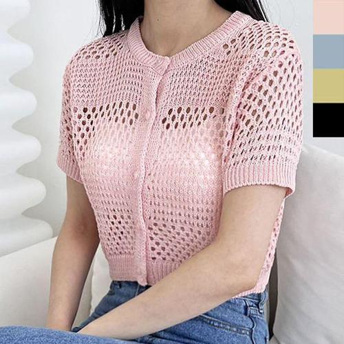 [에이치플러스몰]여자 반팔 크롭 그물 니트 가디건 1P 시원한 카디건