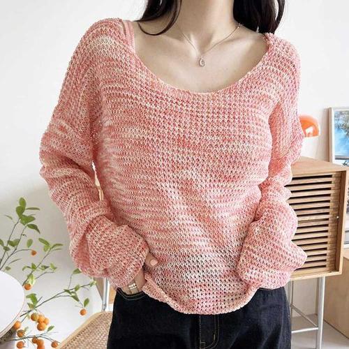 [모노무드]모노무드 크롭 여자 그물 니트 긴팔 여름 데일리 캐주얼 데이트