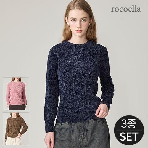 [로코엘라] 모덴 벨벳 터치업 글리터 케이블 여성 니트 3종세트