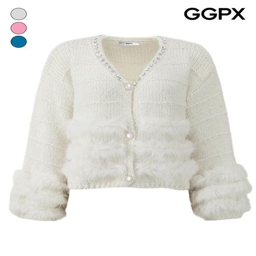 [GGPX]보석 Y버튼 글리터 퍼 울 니트 가디건 (GPBKG022F)