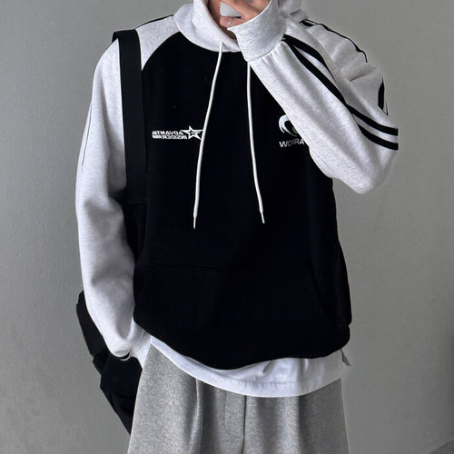 제로스샵 / 캠퍼스룩/스포티무드 인사이더 배색 나그랑띠 오버핏 기모후드