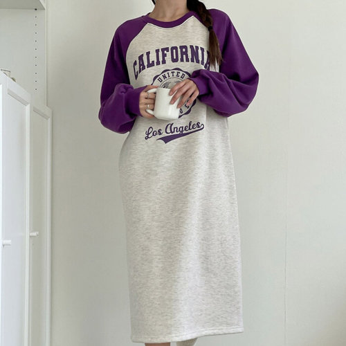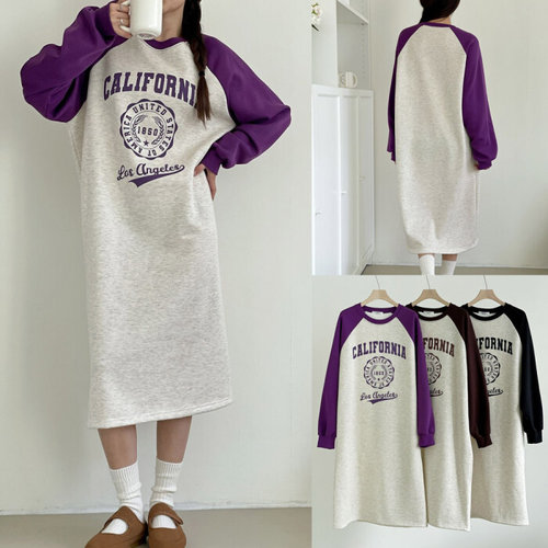 나야홍 / 빅사이즈 512 기모배색나그랑원피스 DLIV845