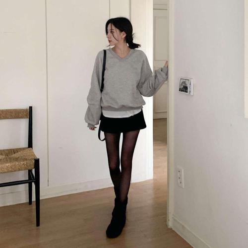 옷자락 / 여성 브이넥 나그랑 기모 긴팔 맨투맨 라벨포인트
