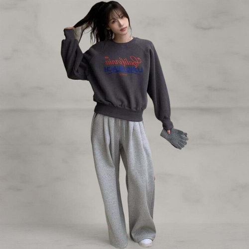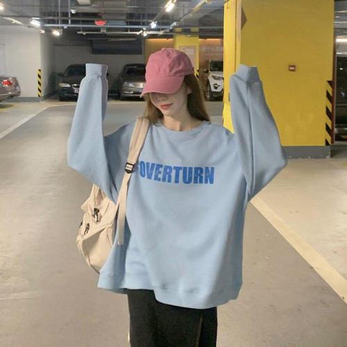 [셀럽하우스]여성 VKHK3501 영문 기모 나그랑 어깨 긴 소매 루즈핏 맨투맨